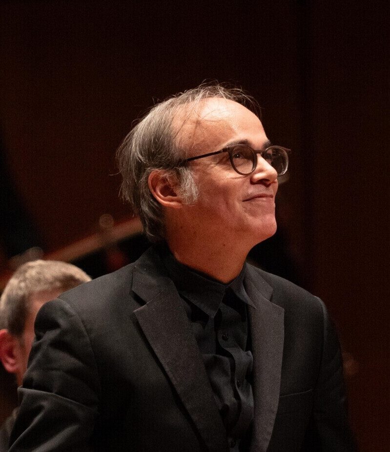 Equally at home in opera, he has conducted Tchaikovsky’s Eugene Onegin, Britten’s A Midsummer Night’s Dream, Peter Grimes, and most recently George Benjamin’s Lessons in Love and Violence, the world premieres of Missy Mazzoli’s The Listeners and Samir Odeh-Tamimi’s L’Apocalyspe Arabe.